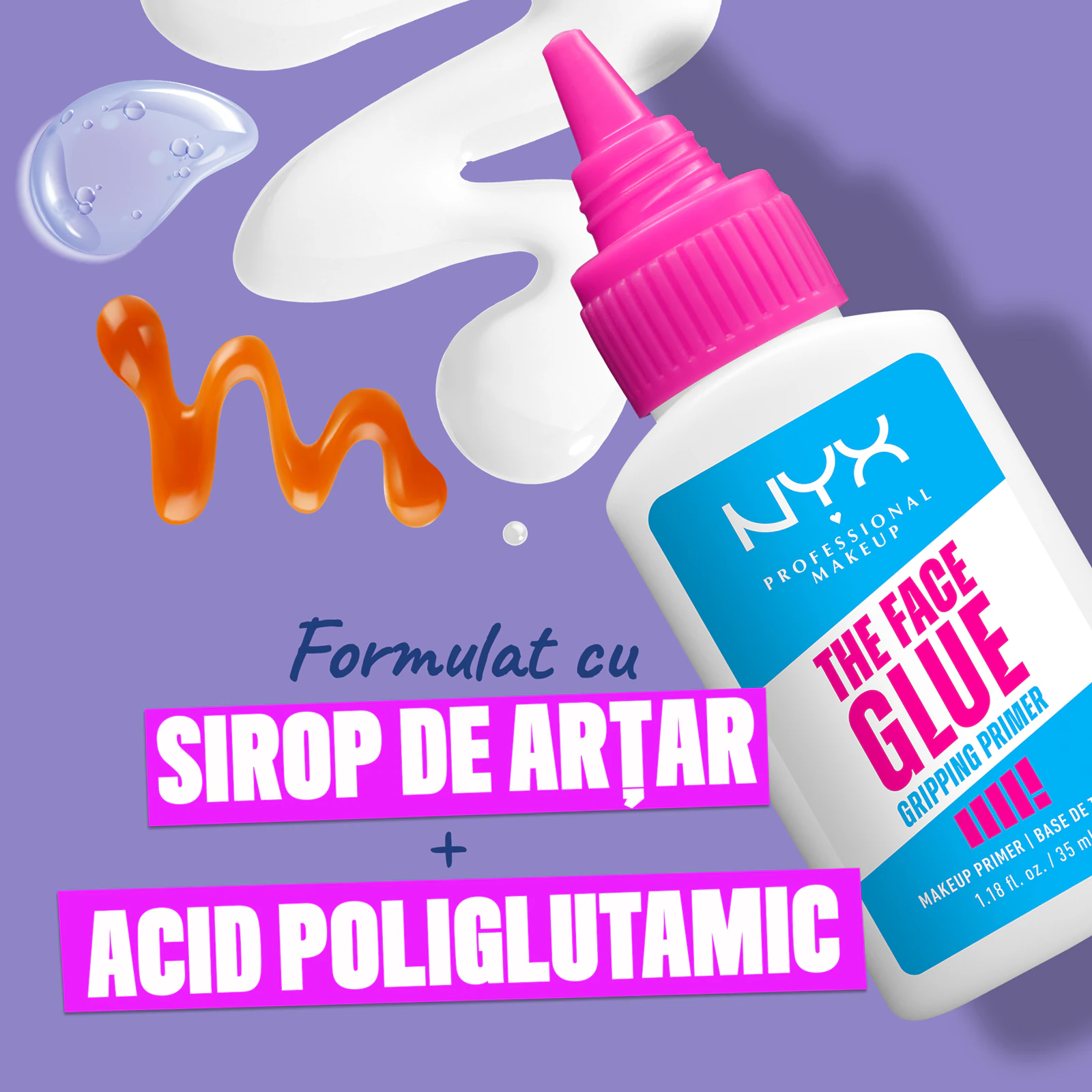 Baza de machiaj The Face glue are in compozitie acid poliglutamic, un ingredient care hidrateaza tenul si ii ofera nutritia necesara de care are nevoie si sirop de artar, perfect pentru a favoriza aderenta fondului de ten.